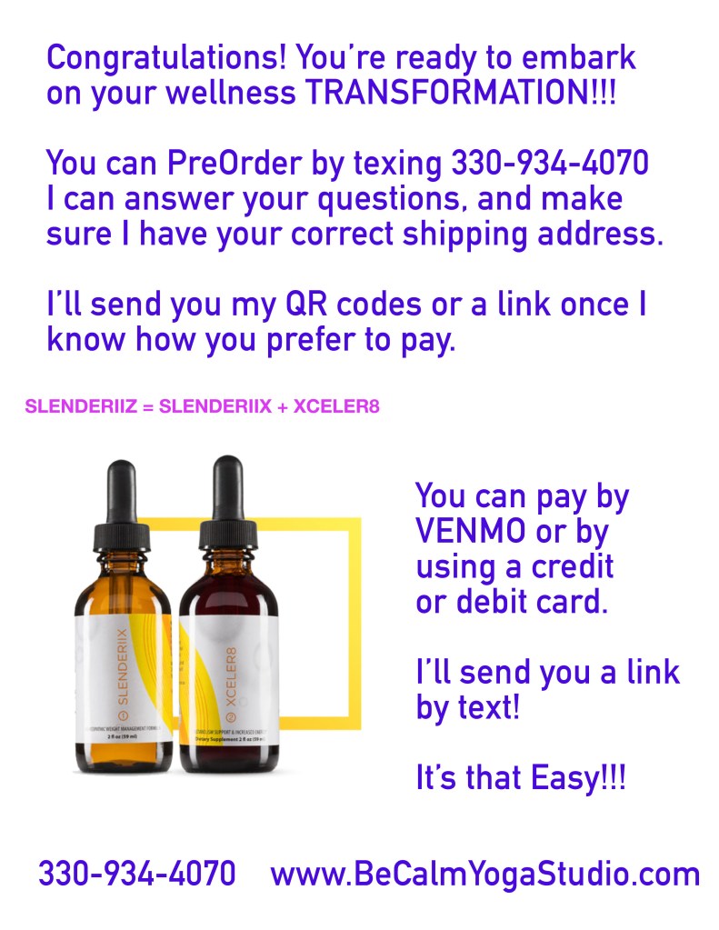 Due to several success stories, and people asking me if I am going to carry “the skinny drops” I have started Slenderiiz drops this week. I am assuming my results will be amazing as well, although I am not looking for weight loss, just hormone balancing and an increase in energy and vitality. I have only had a few doses and so far I am liking it. (I’ve now been on them for almost 2 weeks and lost 7.5 pounds! I am also handling stress better. WOW!)